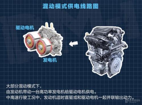 | 发动机直驱模式 | 发动机以最高效率参与车辆驱动,同时减少电机输出,降低电耗,发动机多余能量也会储存在电池当中 |