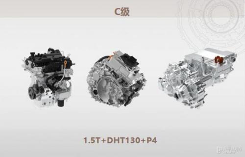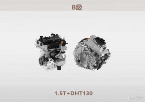 动力架构:1.5T涡轮增压四缸汽油机+ 130kW混动变速箱(DHT130)