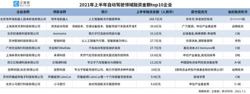 除了登陆二级市场,自动驾驶企业持续获得资本加持。根据企查查提供的数据(国外市场不完整),今年上半年,自动驾驶领域的投融资事件共计69起,披露的投融资总金额超652亿元。根据企查查的统计,其中获得融资次数较多的品牌有地平线、图森未来、纵目科技、智行者;获得披露融资金额最多的品牌是地平线、滴滴、momenta、智加科技。
