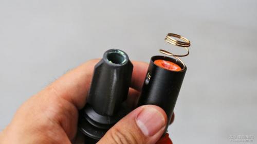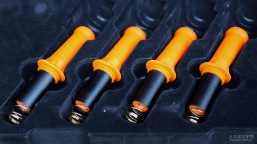 作为高压包到火花塞的连接找载体,原厂的和改装件在用料方面还是有较大差距的,原厂的看上去就是普通的金属弹簧,而改装组件虽然也是通过弹簧连接,但是弹簧为镀金材质,而内部是否有更多的电路设计就不得知了,只是单从感官上可以判断到的就是:因为使用了更好的材料,从高压包输出的电压可以更好更高效的传递到火花塞,以实现更高的点火效率,促进汽油在缸内的充分燃烧,实现更有效的动力输出。