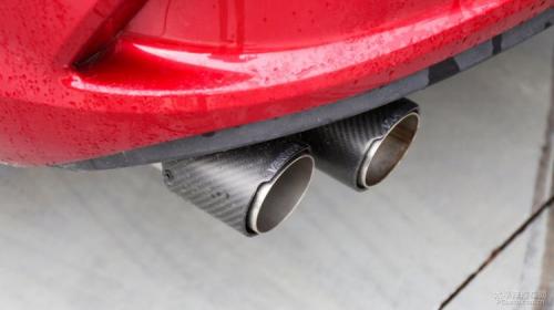 不锈钢的尾排套上一圈碳纤维的装饰,与黑色的保险杠搭配起来没有什么违和感,双边四出的位置也是在原厂排气管所在的位置,去掉了原厂的镀铬装饰圈后就能近乎完美的放下这套排气。