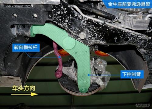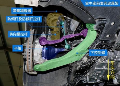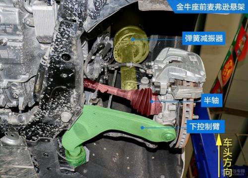 麦弗逊前悬架相信大家都不陌生,简单紧凑的结构是横置发动机布局车型的首选前悬架类型,金牛座也不例外。前悬架包括转向节以及转向节都采用了铝合金材质,福特在这方面一点不含糊,轻量化铝合金的使用率非常高,远远超过同级别车型。