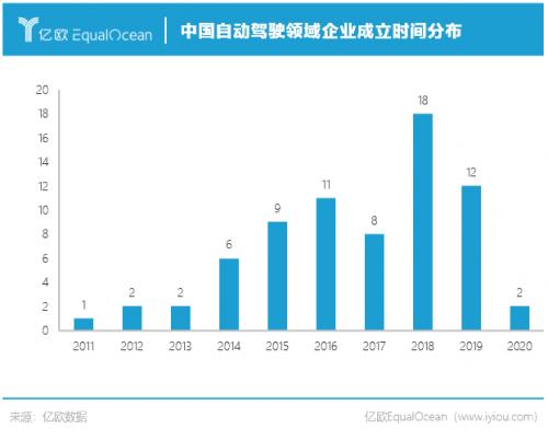 从2015年开始,行业初创企业的数量开始快速增多,到2018年达到顶峰,一年成立了18家自动驾驶企业,在中国自动驾驶企业数量中占比达25%,其中包括图森未来、AutoX、文远知行、蘑菇车联、芯驰科技、赢彻科技、中智行等后起之秀。