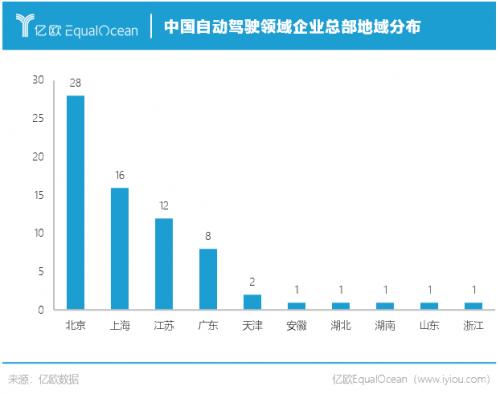 亿欧汽车发现,目前大部分自动驾驶企业集中在北京、上海、江苏以及广东四个省市。这些地方均具备了自动驾驶发展的三大要素。