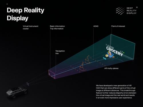 该款深度现实显示屏能够展示距离不同的虚拟图像的不同部分,含有近场信息,能够提供所有必要的仪表盘元素,并展示在让驾驶员眼睛舒适的距离内,便于驾驶员在城市或高速公路上行驶时“查看”。还包括沉浸式True AR多深度平面,充满了地面导航、信息娱乐系统以及游戏内容等AR应用。此种突破性功能进一步减少了虚拟图像与真实世界之间的差异误差,可以带来更加沉浸式的安全用户体验。