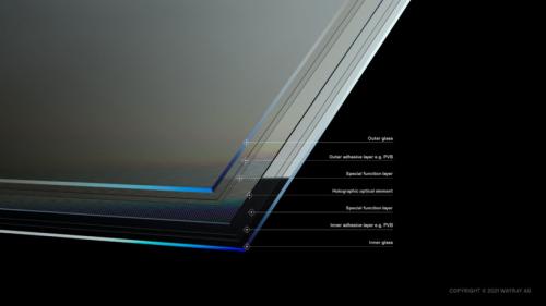 WayRay的独特技术由其与国际知名独家合作伙伴密切合作研发,为了给体积位相全息光学元件(vHOE)研发透明光聚合物薄膜,WayRay与全球领先的高技术聚合物材料供应商科思创(Covestro AG)合作。此外,为了将此种特殊薄层集成至弯曲的挡风玻璃夹层中,以实现vHOE的所有功能,WayRay还与全球领先的高科技汽车玻璃设计和制造企业AGP eGlass合作。
