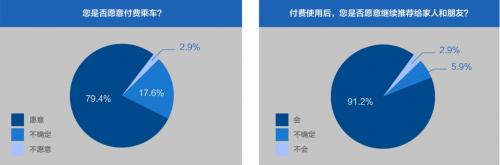 今年以来,百度自动驾驶出行服务平台共收到近50000条用户评价,用户五星好评超95%,试乘满意度4.9分,较高的试乘满意度,推动用户复乘率及留存率稳步提升。根据调查显示,绝大多数用户愿意为自动驾驶出行支付费用,且在收费情况下,仍然愿意推荐家人朋友使用。自动驾驶正成为这些城市市民的出行新风尚。