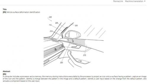 该项专利意味着马自达设想了一种投影仪,能够在表面上展示一个全息图像。当用户将手指放在该虚拟“按钮”上时,该投影仪会利用一种传感器来探测投影形状的变化,以表示用户输入情况。