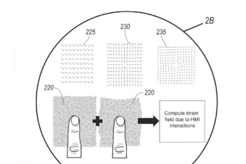 在下图2中可以看到,上文提到的传感器能够探测到用户输入方向,该专利文件也指出该表面能够探测用户的手指对表面施加的力。因此,可用于改变设置。例如,如果信息娱乐系统设置的音量很低,按住该“按钮”同时用比平时更大的力按住它,可以让该系统识别出用户希望大幅增加音量,同时还可以加快改变音量(或者调节环境温度)的速度。