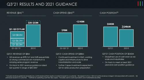 随之而来的是,Velodyne三季度营业亏损约为5478万美元,净亏损为5471万美元。截至2021年9月30日,其资产负债表中现金和短期投资为3.245亿美元。