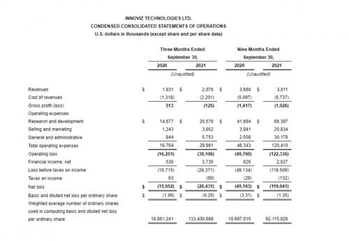 五家在美上市公司里,Innoviz市值最低,低于10亿美元。Innoviz的三季度路演中没有什么新东西,就基础财报数据来看,在截至9月30日的三季度,该公司的营收为210万美元,与2021年第二季度相比暴增了106%。和其他竞争对手一样,Innoviz成本也在激增,这导致其同期运营亏损超过3000万美元,净亏损达到2643万美元。