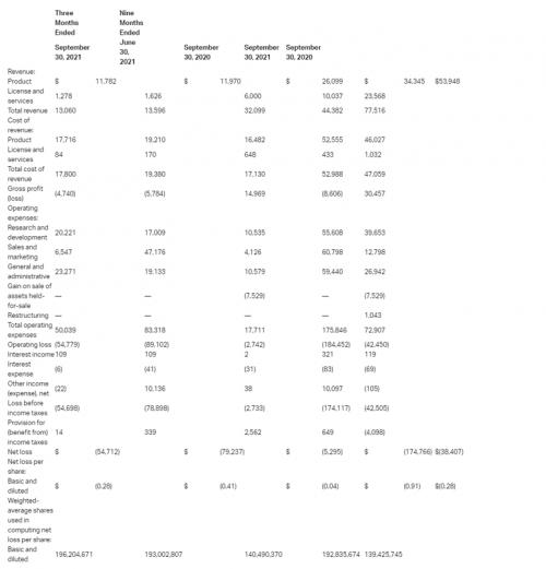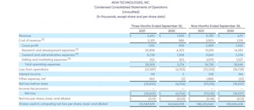 Aeva表示,其三季度营收从去年同期的190万美元增加到350万美元;营业亏损从去年的480万美元上升至2740万美元;净亏损也从去年的475万美元扩大到2661万美元。