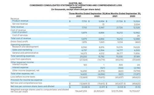 第三季度,Ouster的营收同比大增31%至780万美元;净亏损从去年同期的2000万美元收窄至1300万美元;毛利润为24%,高于去年同期的18%。