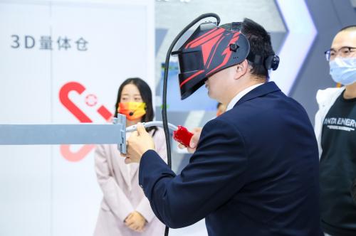 在5G+VR工业焊接实训平台,观众可以通过网络精准练习焊接技术,比传统的师傅带徒弟更高效、快捷,让观众身临其境地感受5G网络给制造业数字化升级带来的便利和高效。