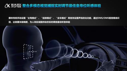 基于这些的思考,科大讯飞打造座舱内的听响空间,包括360度的环绕立体声,把真实的现场还原到车内;结合多音区的交互,打造VRP的专属听感。