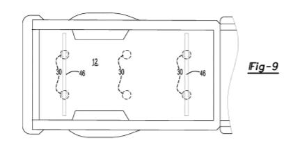 图纸显示,将四到六个磁铁嵌入车厢板件(bed floor)底下,而且可以选择性打开和关闭磁铁。这意味着可以根据需要将车厢板件分成不同的部分,并进行磁化。