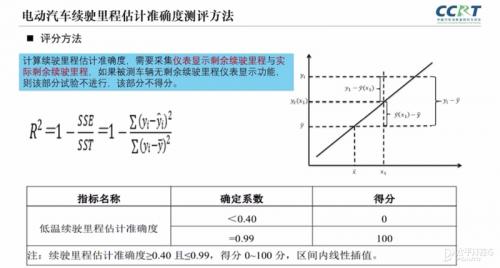 CCRT还针对电动汽车续驶里程估计准确度方面,开发了特定的数学模型,采集「仪表显示剩余续驶里程和实际剩余续驶里程」之后,得出的确定系数进行比对,从而计算出相应的数值。