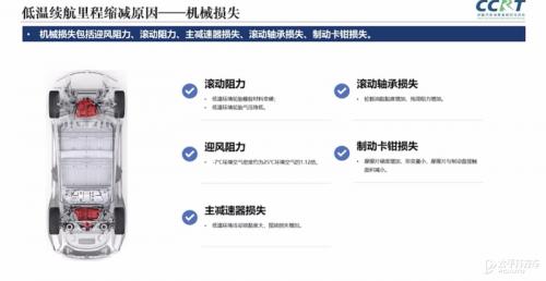 机械损失同样是续航里程缩减较大的一个原因,由于低温导致轮胎橡胶变硬、气压降低,轮胎的滚动阻力变大;润滑油的黏度变大,车辆中的滚动轴承拖滞阻力增加;空气密度增加,空气阻力也会增加。