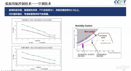 再一个就是使用热泵空调,其效率为PTC的2.5倍以上;加上在条件允许的情况下使用内循环模式,可以有效的减小制热功率,提升续航里程。