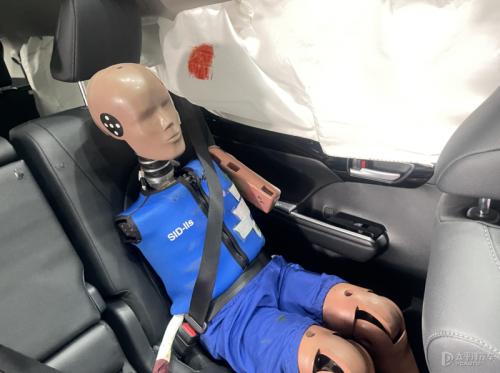 车内情况,碰撞瞬间车内侧气囊和气帘均可顺利弹出。值得一提的是,这些侧气帘在该项测试中尤为重要,能避免头部或身体直接与车侧相撞,最大限度减轻人员伤害的程度。另外,规程对于侧气帘的评价也有严格的要求,需要从外形尺寸、展开形态以及动态保护三个方面进行考量。