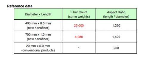 新型纳米短纤维的长度仅为1mm或更短,但由于直径小,纵横比(长径比)高,可实现有效增强。此外,该纳米短纤维还可防止缠结和扭曲,且有助于均匀分散纤维和橡胶。该纤维形成连续的线或表面,而不是分散的团块。在实际使用中,该短纤维与橡胶不同,通过吸收变形应力,从而产生更耐用的橡胶制品。
