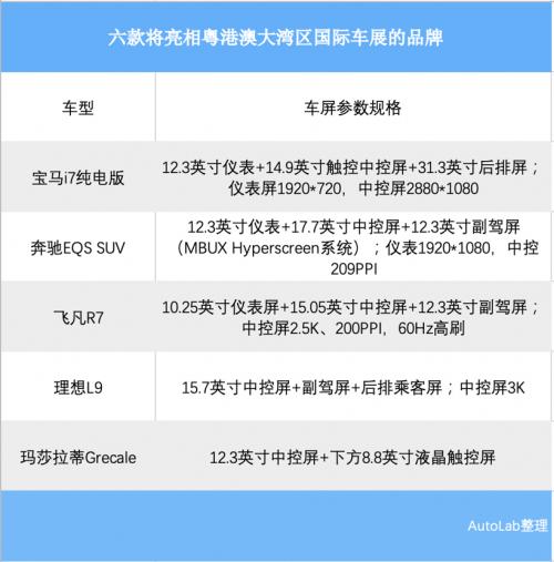 本周六开幕的粤港澳大湾区国际车展上,多款配有“大屏”的新车就将扎堆线下亮相,包括飞凡R7、宝马i7、奔驰EQS SUV、理想L9等车型。几款车型目测已经预热了好几波,大屏联屏都是内饰的宣传重点。