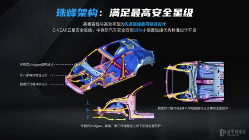 安全同样是「珠峰」架构不能忽视的部分,车辆基于C-NCAP五星标准、中保研汽车安全指数优秀标准等安全体系进行开发,并基于双侧25%小偏置碰撞优秀标准设计开发。
