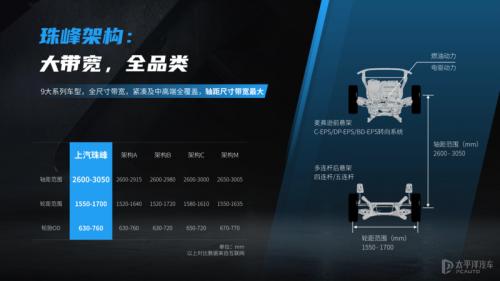 同时近500mm的大尺寸带宽轴距及150mm轮距带宽,可实现轿车、SUV、MPV各品类,从紧凑级到中高端级9大系列车型的全包含、全覆盖。