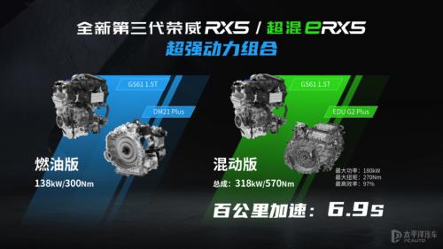 动力方面,全新第三代荣威RX5/超混eRX5的推出,提供了两种动力选择,其中混动版NEDC综合续航高达1050km,综合油耗低至1.4L/100km。