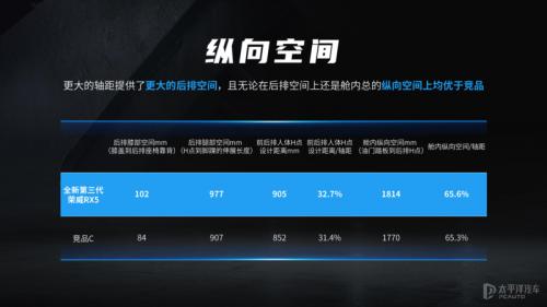 车内空间方面,全新第三代荣威RX5/超混eRX5的前后排成员人体中心(H点)X向距离,以及轮胎直径除以车高后比例均在同级中表现优异。