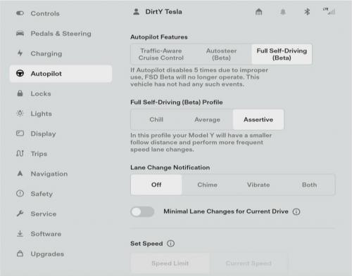 更宽的路径车辆行驶的路径是一条更粗线,代表汽车当前占据和不久将占据的整个空间。箭头交通标志箭头交通标志也会出现在路径中,以显示汽车正在减速。箭头交通标志的不透明度和速度会根据汽车减速的速度而变化。停止线特斯拉前方会出现一条白线或黑线,告诉安全驾驶员汽车的停靠地点。一旦汽车意识到必须停下来,如接近十字路口时,这条线就会出现。红绿灯交通信号灯有时会显示为蓝色,表示车辆正在遵守该交通信号灯。假设车辆在一个有三个红绿灯的十字路口左转;左车道前方的灯将为蓝色,而其他两个直行交通灯将保持灰色。FSD消息FSD会启动消息通知,例如,如果它发现十字路口和红灯,它会说“等红灯停车”。该系统还将显示各种信息,清楚地表明车辆正在停车或等待的原因,例如停车标志、过马路的行人、骑自行车的人等等。语音驱动笔记该软件允许即时的驾驶员反馈。如果驾驶员必须获取控制权,FSD系统会提醒驾驶员。当然,驾驶员可以留下录音,例如如果软件显示红灯要停车,但驾驶员看到绿灯,驾驶员可以直接告知实情,以便后续审查。发光的限速标志限速标志通常出现在同一位置,但当车辆速度超过限速的50%以上时,该标志会发光,例如在50英里/小时的区域以75英里/小时的速度行驶。速度限制偏移新更新FSD将Autopilot速度设置为超过速度限制的绝对值的选项删除。过去,驾驶员可以将自动驾驶仪设置为超过发布的速度限制10英里/小时。但是,驾驶员现在必须使用“相对”选项,选择一个百分比值来超出限制。因此,选择15%的偏移量将使车辆在30英里/小时的区域中以大约35英里/小时的速度行驶,而在65英里/小时的区域中,车辆将以高达75英里/小时的速度行驶。新的“最小车道变更”选项如果驾驶员想减少车辆的变道次数,可以使用新选项“最少变道”。通过让车辆仅在需要遵循路线时才进行车道变换,Autopilot菜单中的这个新选项可减少车道变换,并防止车辆因车道上行驶缓慢的交通而改变车道。自动驾驶选项的新快捷方式在这个测试版中,特斯拉还为部分Autopilot引入新的快捷方式。在以前的测试版中向左/向右倾斜右滚轮时,车辆会将其跟随距离从2调整为7。此选项现已删除,因为FSD Beta现在可以在高速公路上自动处理跟随距离。删除“Autopilot导航”随着将FSD Beta引入高速公路驾驶,特斯拉现在取消了“Autopilot导航(NoA)”功能。NoA是特斯拉对执行变道以跟随驾驶路线的车辆的术语。但是,随着FSD Beta v11的推出,此选项变得多余,现在已通过此更新将其删除。更正:如果驾驶员在“Autopilot”菜单上切换到“Autosteer”,“Autopilot导航”仍然可用。当驾驶员使用FSD Beta时,Autopilot导航选项会消失。新的自动驾驶仪菜单