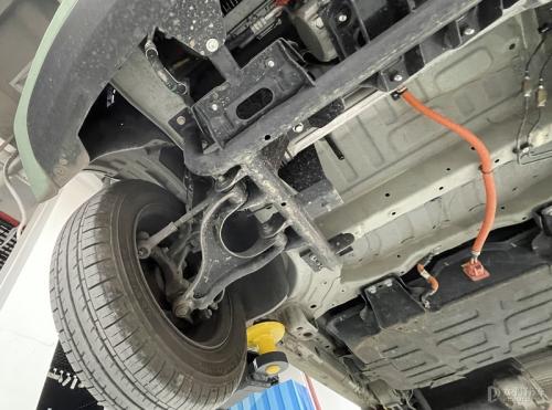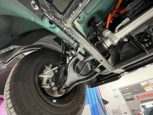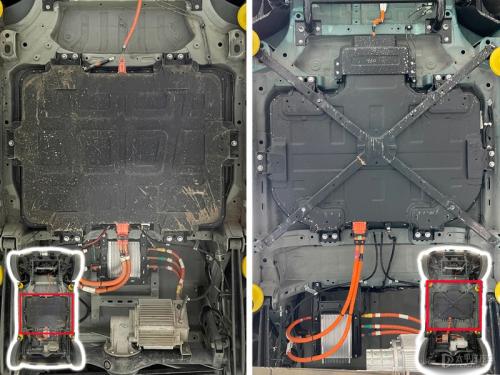 在前桥部分,可以明显看到两者前横梁与电池之间的距离和深度又有不同,敞篷版的前横梁更好后扇形区域也更深。而且电池的布局也更靠前,重心整体往前移,除了能保证成员有更好的驾乘感之外,也能进一步提高行驶的安全性。倘如该区域与GAMEBOY版不同(注意!是假设!),那么说明敞篷版的车架生产线是独立的一条生产线,这无疑会使新车成本进一步提高。
