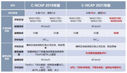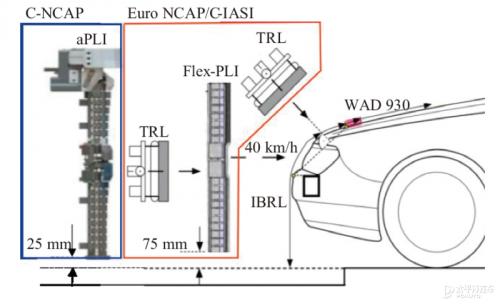 修改了行人保护试验及评价方法,采用先进行人腿型(Advanced Pedestrian Legform Impactor, aPLI)替代传统FLEX-PLI和TRL上腿型进行行人腿部碰撞保护试验评价;