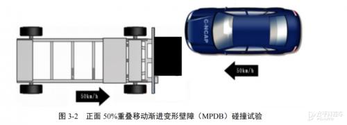 使用正面50%重叠移动渐进变形壁障碰撞试验,替代了正面40%重叠可变形壁障碰撞试验及评价方法;