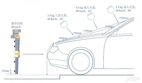 2、行人保护部分包含头型试验和腿型试验。