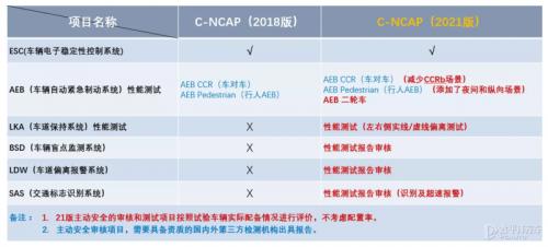 增加了车辆自动紧急制动系统(AEB)的试验场景;