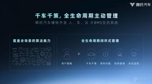 「天工电池」还搭载了全生命周期的闭环管理系统,可实现对用车场景的覆盖,并依靠360提供的大数据运算平台,加上哪吒的核心的算法模型,实现「千人千策」的主动式管理。