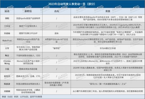 事实上,在极致内卷的自动驾驶领域,诸如王伟宝、郭阳这样的高管变动并非个例。据盖世汽车梳理发现,2023年以来自动驾驶业务板块有多员大将退出原本的战场。