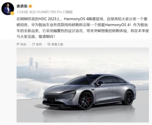 日前,余承东在社交平台发文称,华为智选车业务首款纯电轿跑将会第一个搭载HarmonyOS4,作为智选车的全新品类,将在本季度与大家见面。在该消息下方,余承东还发布了一辆车辆引擎盖印有“LUXEED”字母标识的新车配图。结合新车的命名方式和此前行业内的爆料来看,业界普遍认为Luxeed即为华为和奇瑞联合打造的智选车新品牌。