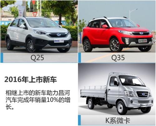 这一年北汽昌河圆满完成全年销量目标,实现同比增长10.1%的新突破;这一年具有领先制造水平的现代化工厂在景德镇竣工投产,汽车产业园、汽车研发中心破土奠基;这一年北汽昌河SUV产品Q25、Q35, K系微卡等相继上市,第一款新能源产品北斗星E也公开亮相。这一年北汽昌河获得全国工业品牌培育示范企业、年度中国汽车品牌等多项殊荣,新上市的Q25、Q35等产品荣获年度小型SUV、年度最受关注车型等多项大奖,在2016年中国量产车性能大赛的三站比赛中,Q35共获得克拉玛依、牙克石两站小组冠军,“SUV通过性能测试冠军”“场地计时赛冠军”等9个单项冠军。北汽昌河的品牌影响力和产品整体竞争实力得到显著的提升。