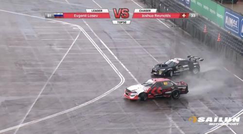 Arkadiy的对手是Jerome Vassia。Jerome跟飘时全程表现出慢一拍的节奏和挣扎的姿态;次回合Arkadiy则是全程紧贴其后,没有给对手一丝机会得分,最终也成功晋级。伍家麒则是与Michal Reichert争夺最后一张16强的入场券。伍家麒明显更擅长雨战,跟飘时紧贴Michal,直接导致了Michal在oz2、oz3区域连续后轮驶出赛道。不出意外,伍家麒胜出获得了16强最后一张门票。