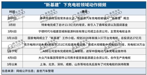 3月4日的中共中央政治局常务会议上,新能源汽车充电桩被纳入“新基建”概念后,充电桩现有头部企业纷纷加码投资。如特来电完成了总计13.5亿元的增资,以进一步扩充其充电网络布局;国家电网规划2020年将新接入57万台充电桩,总投资达27亿元;南方电网则表示,计划未来4年投资251亿元投建充电设施,建成大规模集中充电站150座,充电桩38万台。与此同时,宁德时代、蚂蚁金服等跨界企业,甚至于大众汽车、ABB等海外玩家亦在不断涌入。