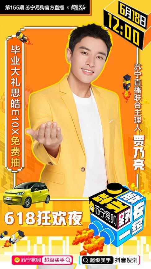 【本网讯】苏宁易购6月18日直播狂欢夜,贾乃亮超级买手直播间将在苏宁易购和抖音直播间分别抽取一位幸运观众,免费送上一台大众旗下子品牌——思皓纯电动汽车E10X。今年618,苏宁汽车加速整合多方资源,打造直播矩阵,抢占流量红利的同时助力合作品牌增加曝光,加速向数字化营销转型。