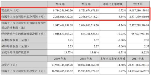威孚高科(000581)2019年财报显示,该年度公司实现营业总收入87.84亿元,同比增长0.72%;实现归母净利润22.68亿元,同比下降5.34%,降幅较去年同期收窄;每股收益为2.25元。该年度公司毛利率为24.1%,同比提高0.8个百分点,净利率为26.2%,同比降低2.1个百分点。