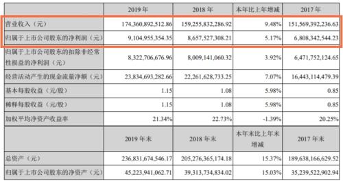 据潍柴动力(000338)2019年度业绩报告,该年度潍柴动力营业收入达1743.61亿元,同比增长9.48%,实现归属于上市公司股东的净利润91.05亿元,同比增长5.17%。