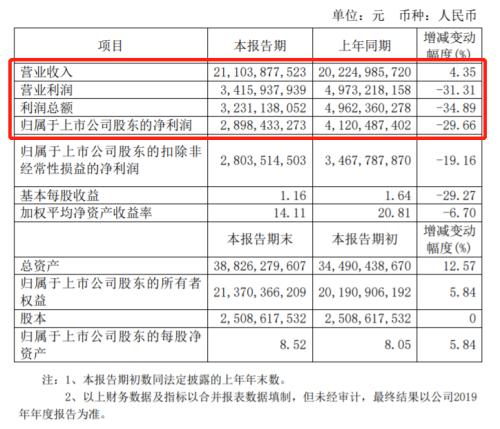 据福耀玻璃(600660)2019年业绩快报显示,公司去年实现营业收入211.04亿元,同比增长4.35%;归属于上市公司股东的净利润为28.98亿元,同比下降29.66%;基本每股收益1.16元,同比下降29.27%。