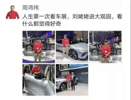 从现场流出的照片中,可以看到周鸿祎穿着标志性的红色polo衫,与哪吒汽车的高管一同坐在展台下方。随后,传周鸿祎发了一个朋友圈,发表了自己第一次看车展的感受。