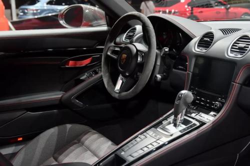 全新718 T车型加入了更多运动化的设计元素。特殊配色的后视镜外壳,是一大亮点,,车尾采用了中置的黑色镀铬运动型双排气,在普通718车型上也是选配,价值9800人民币。