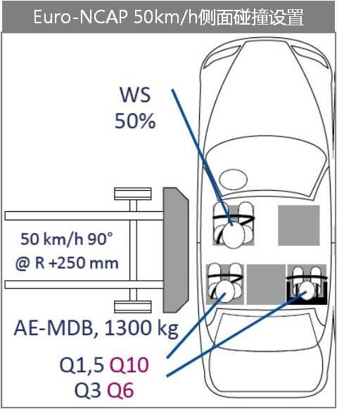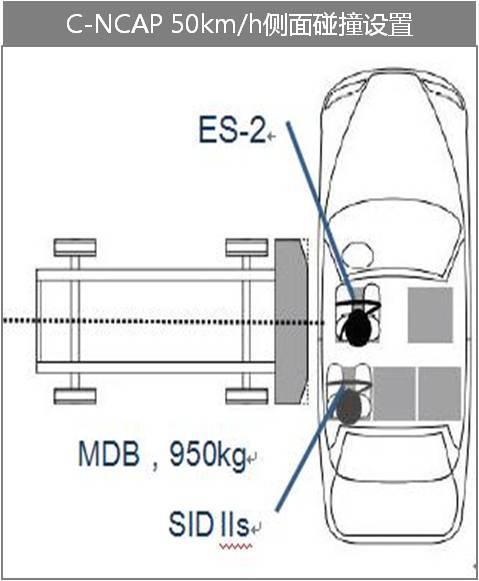 目前中国和欧洲的NCAP也都有这一试验工况,试验碰撞速度都是50±1 km/h,最大的差异还是在移动壁障和假人设置方面。