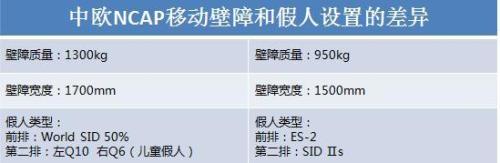 而即使在几个共有类型的试验中,E-NCAP和C-NCAP也存在着一些细微的差别: